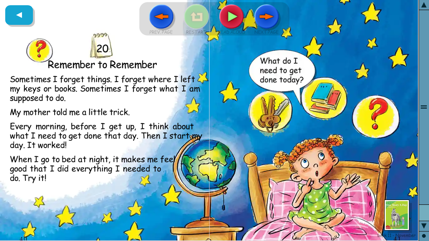 Selamat datang ke aplikasi One Story a Day, platform bacaan awal untuk kanak-kanak 5+ yang lengkap dengan trek audio, aktiviti dan, sudah tentu, 365 cerita hebat – satu untuk setiap hari dalam setahun!