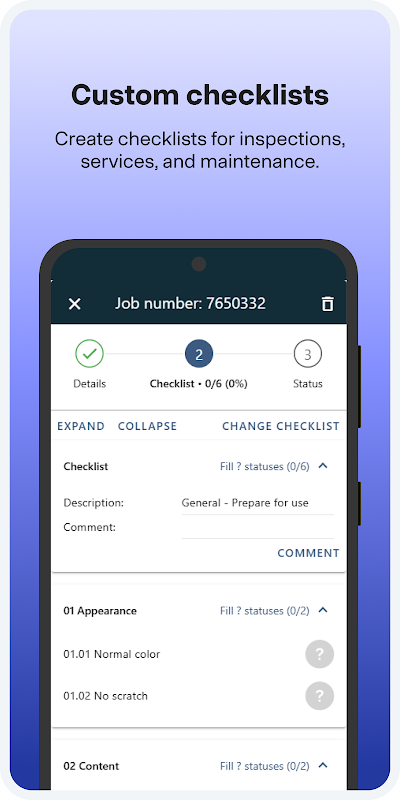 • Tandai peralatan dengan tag NFC dan kod QR untuk mengenal pasti dengan cepat sama ada peralatan itu selamat digunakan