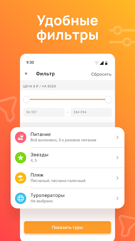 1) Новый фильтр «Прямой перелёт» уже при первом поиске подскажет самый короткий и комфортный тур