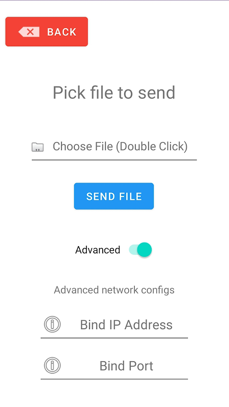 Apl menggunakan sambungan TCP terus antara peranti yang disambungkan ke rangkaian Wi-Fi yang sama. Ia membenarkan pengimbasan untuk peranti yang berkongsi fail, serta memasukkan secara manual Alamat IP peranti jauh yang anda ingin hantar/terima fail daripadanya.