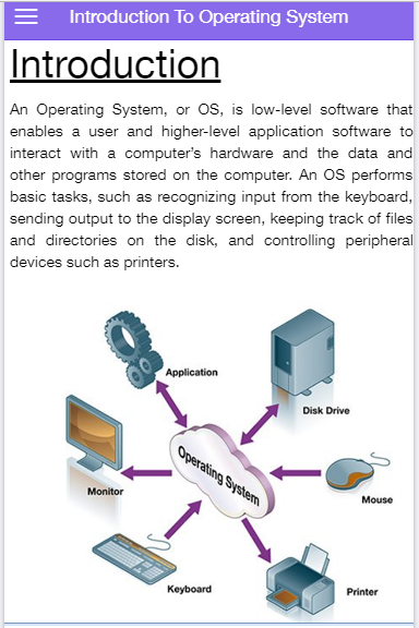 An offline app which has introduction guide to operating system for students.