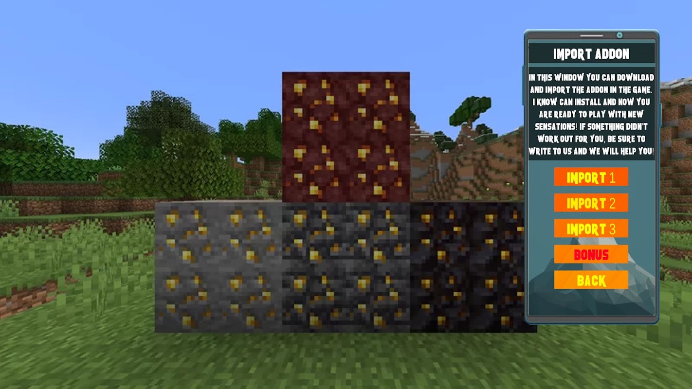 This addon will add to your world a huge amount of interesting and useful ore for your MCPEl! This addon will make your game much nicer and more convenient!