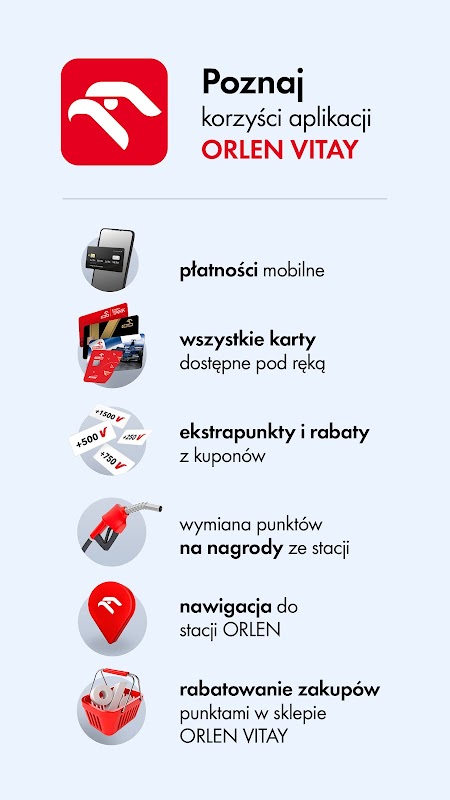 Anda boleh menambahkan kad pembayaran ke aplikasi atau menggunakan pembayaran Apple Pay, Google Pay dan BLIK. Setelah mengisi minyak, gunakan telefon pintar untuk mengimbas kod QR yang terdapat di pengedar, mengesahkan data transaksi dan mengesahkan transaksi dengan PIN atau melalui fungsi biometrik peranti. Anda akan menerima invois untuk transaksi ke alamat e-mel yang diberikan semasa pendaftaran. Di samping itu, anda dapat melihat sejarah transaksi anda, mengedit data, mengumpulkan poin Vitay atau menggunakan kupon promosi. Tambahkan Tangki Perniagaan atau Kad Keluarga Besar anda dan nikmati potongan harga yang anda ada. Di samping itu, versi aplikasi ini akan membolehkan pembelian barang terpilih secara mudah alih, contohnya cecair pencuci cermin depan. Di stesen terpilih anda juga akan membeli kod basuh kereta.