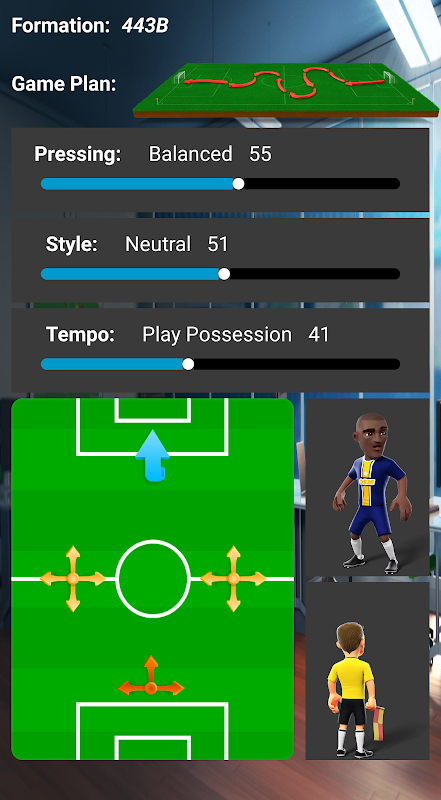 Hanya pilih formasi, pelan permainan, tekel, penandaan lawan anda dan berikan nilai skuad lawan anda, statistik keseluruhan pasukan dan juga pasukan anda, dan dapatkan taktik balas yang bijak.