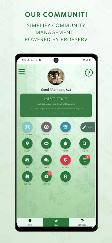 Propserv dengan bangganya mempersembahkan Komuniti Kami. Aplikasi ini membawa keselamatan, kesederhanaan dan kemudahan kepada kehidupan masyarakat. Aplikasi mudah alih kami menyediakan platform semua dalam satu untuk membolehkan syarikat pengurusan, kediaman serta pengurusan komersil berkomunikasi dengan penduduk mereka dan untuk penduduk berkomunikasi dengan pengurusan.