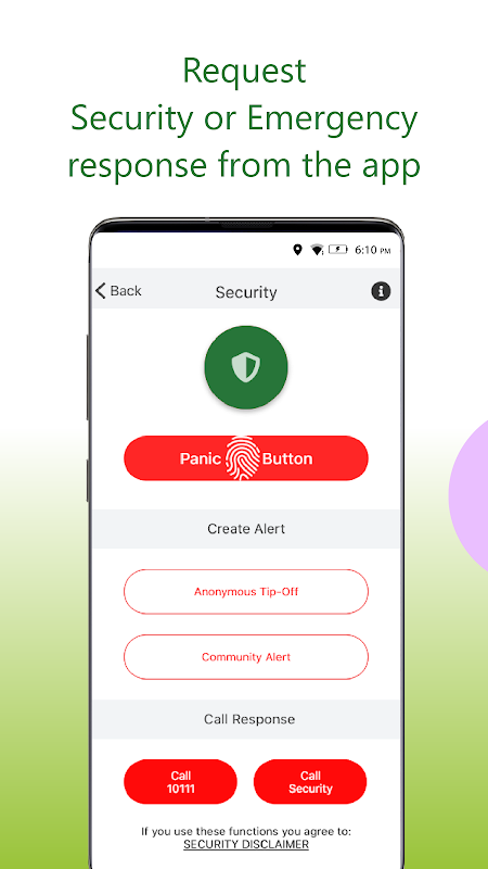 Butang keselamatan boleh ditekan untuk meminta respons keselamatan segera dengan lokasi anda, atau anda boleh menghantar makluman komuniti, atau petua tanpa nama.