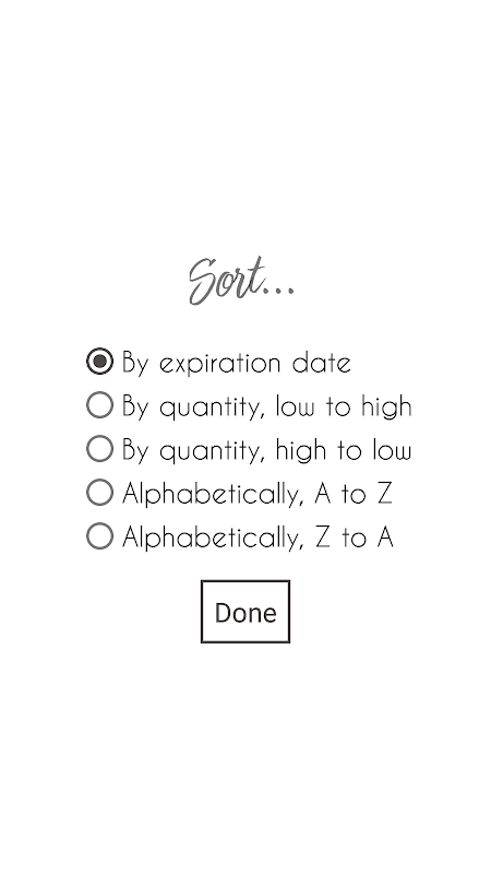 - Store and sort by expiration date