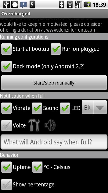 Know when the battery has finished charging (vibration, sound, speech) and status at a slide reach.