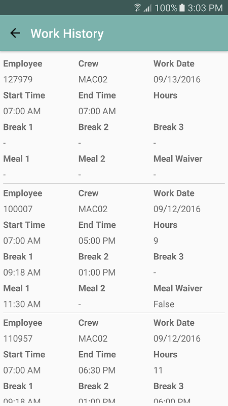 Ia direka sebagai penyelesaian mudah alih asli mencatatkan cekap aktiviti lapangan overhead sama ada secara bebas atau dalam persekitaran kumpulan kerja. Ia juga boleh dan akan digunakan dalam pengesanan semua peristiwa masa tidak produktif sepanjang hari kerja. Permohonan ini menyediakan satu platform yang baik bagi pengiktirafan dasar dan tanda pekerja selamat pada masa mematuhi semua mandat negeri untuk Rehat dan Pemulihan tempoh.