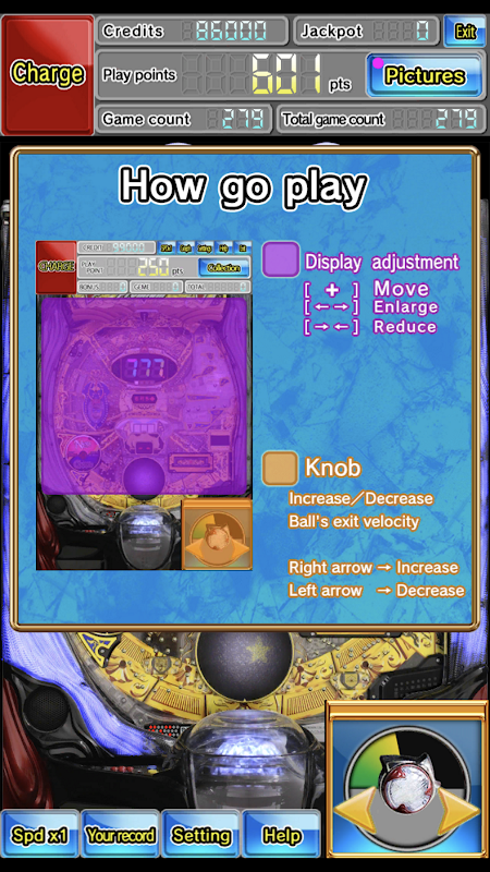 Untuk membantu anda memahami cara bermain pachinko, navigasi disediakan pada skrin.