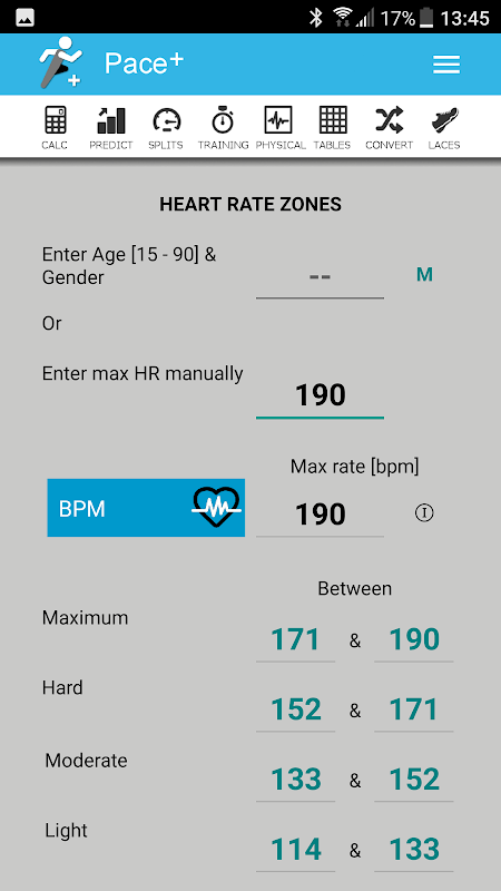 Pace +, kalkulator dan penukar untuk pelari termasuk: