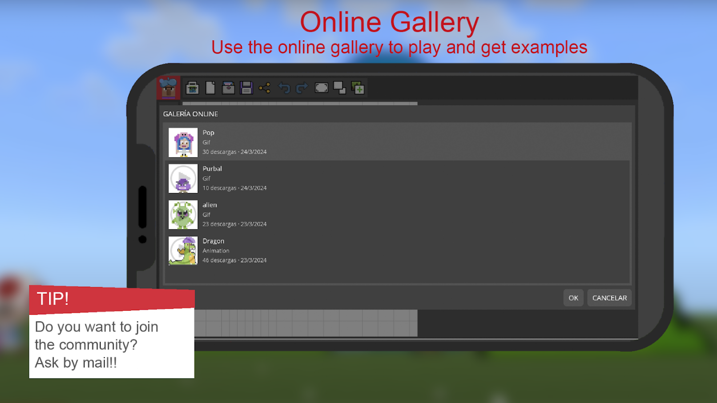 PaintCraft berfungsi hebat dengan permainan seperti Minecraft Bedrock*, membolehkan anda mereka bentuk, menganimasikan dan juga menjalankan skrip C# terus dari dunia anda. Tiada mod diperlukan!