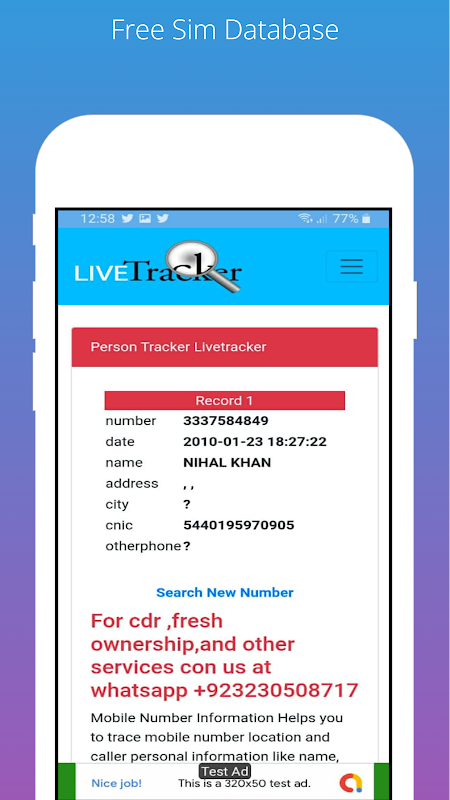 Sim Database is an Pakistani App For Sim Details and All Number Against CNIC.