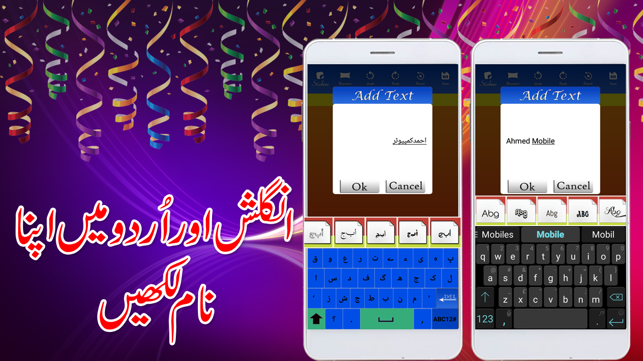 on name with amazing urdu and english keyboard and share your photo with friends.