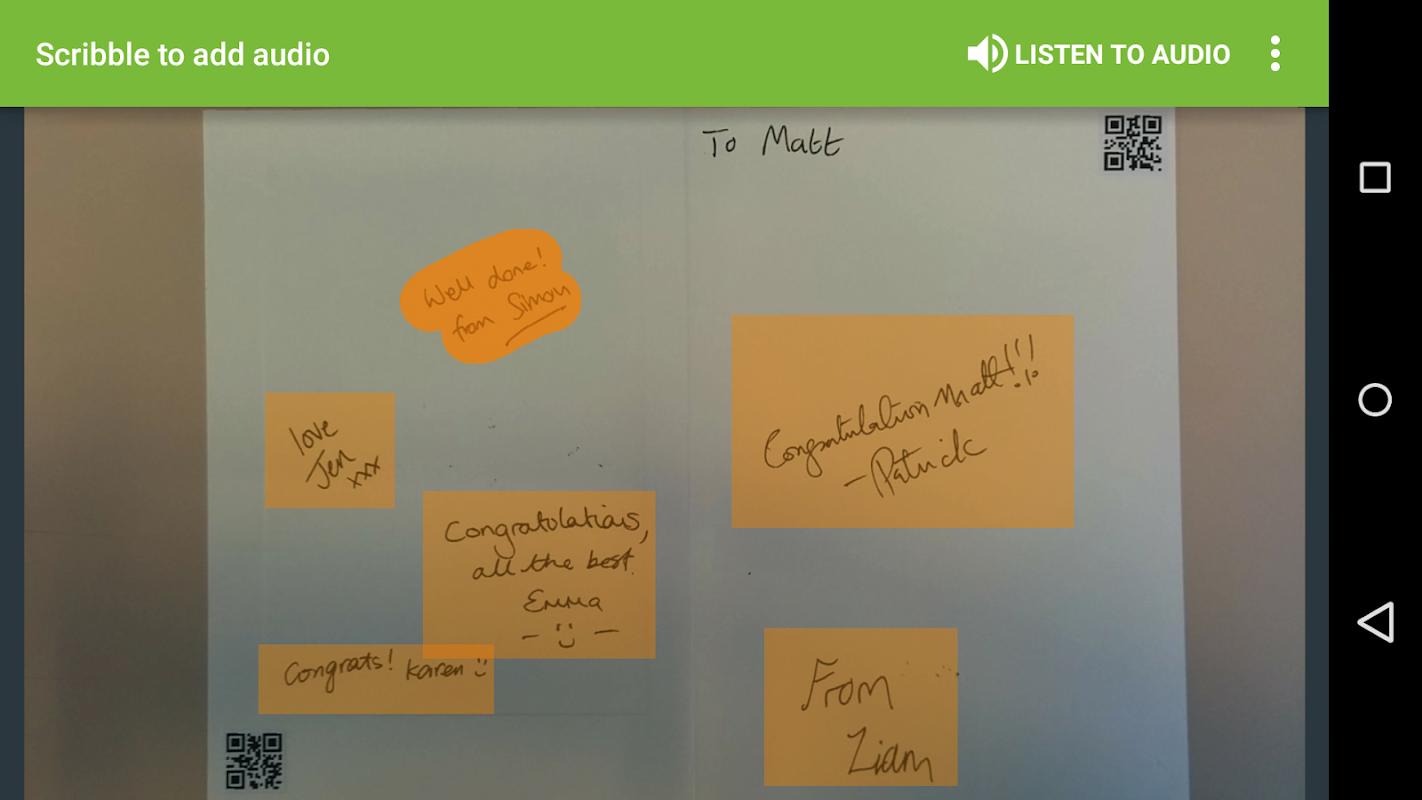 Gunakan PaperChains dengan cepat menambah audio ke dokumen bercetak atau dilakarkan. Mengambil gambar dokumen PaperChains untuk memulakan proses tersebut, kemudian berkongsi dengan orang lain untuk biarkan mereka menambah kepada audio.