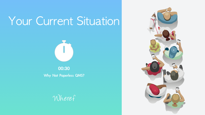 Think Paperless. Think how to solve the current people in queue method with paperless and contactless solutions.