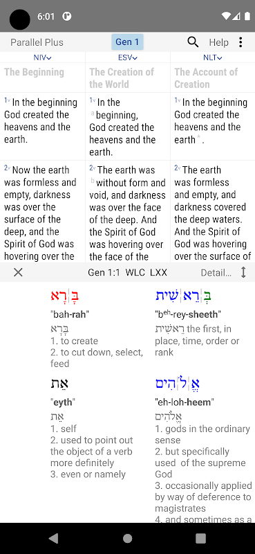 Aplikasi pengajian Bible luar talian Parallel Plus dengan kajian perkataan, penghuraian, Ibrani, Yunani