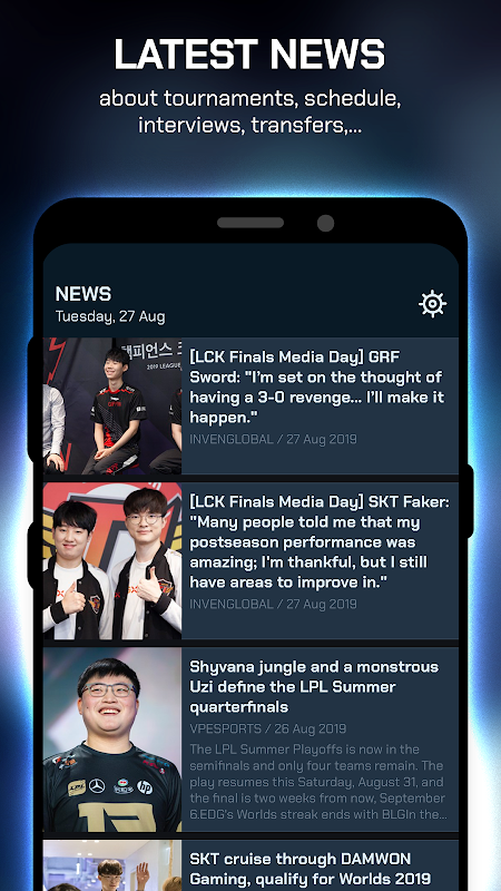 ParaScore memastikan anda sentiasa dikemas kini dengan semua jadual, skor terkini, kedudukan dan berita daripada semua kejohanan League of Legends paling popular di dunia: Kejohanan Dunia, Jemputan Pertengahan Musim, All-Stars, Rift Rivals, LCK, LPL, LCS, LEC, VCS dan banyak lagi.