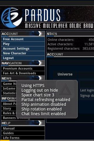 Pardus for Android is a convenient web client for the massive multiplayer online game Pardus. Its features are: