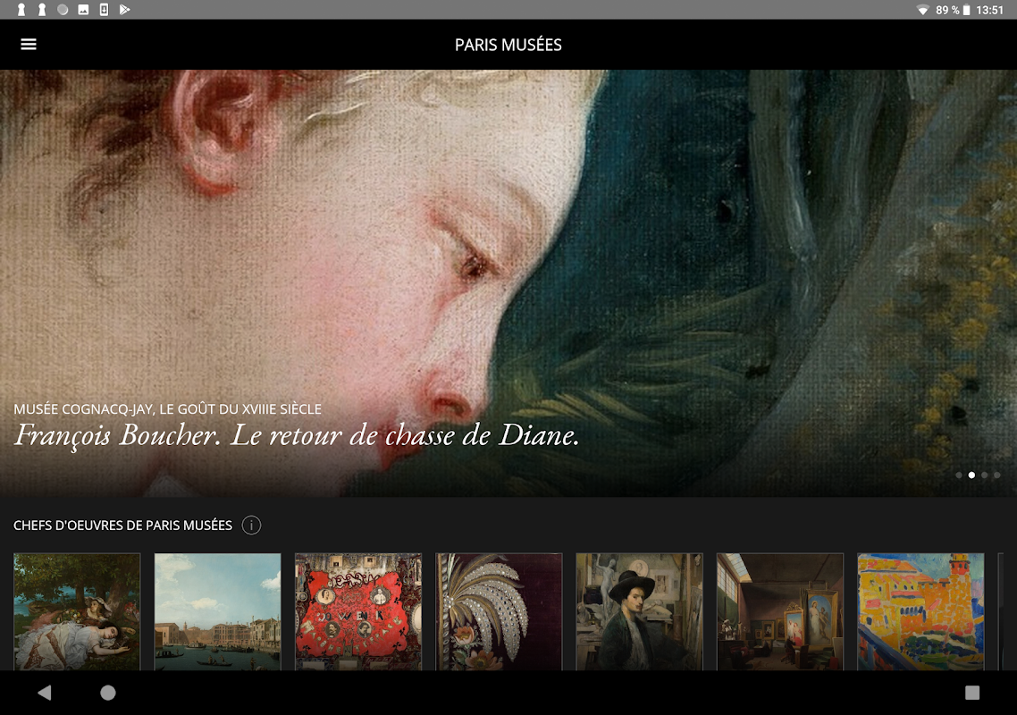 52 kerja-kerja dari muzium-muzium Kota Paris kini dibentangkan dalam aplikasi: kepingan-kepingan yang luar biasa, yang sebahagiannya tidak dipamerkan. Permohonan tidak lama lagi akan diperkaya dengan kerja-kerja baru untuk mencadangkan satu set lebih daripada 100 objek.
