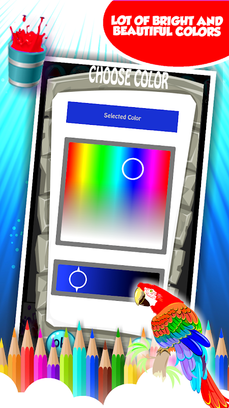This is the awesome educational game for children and for toddlers. You can let them doodle if they wish. While they draw lines aimlessly you will have enough time to finish all the housework. We have to mention that they can also listen to the wonderful music in the background while they paint. Browse the parrot coloring images and select the one on your smartphone that will provide your kids with tons of fun. Tell them not to worry if they make a mistake because they can use the eraser to correct it. There is also a hand icon and they can tap on it if they want to zoom in or out the picture in order to fill in the tiniest gaps with mesmerizing shades. In the end you can save their artwork in the gallery and browse it there and admire it. Set the best photo as the coolest wallpaper on your tablet and it will brighten your day. Download free the popular Parrot Coloring Book and enjoy in the sensational illustrations of the cutest birds whenever you wish.