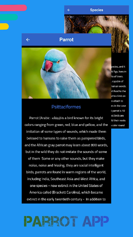 Aplikasi Parrot adalah perakam suara percuma yang memberi anda rakaman suara, suara dan kata-kata yang siap dimainkan dengan mudah hanya dalam satu klik dan membolehkan anda menggunakan gambar Parrot sebagai kertas dinding mudah alih dan skrin kunci dan membaginya dengan rakan.
