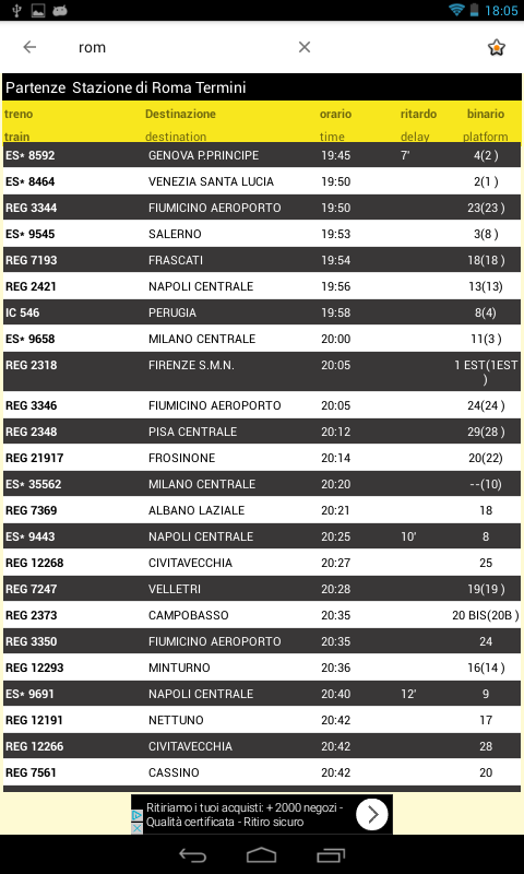 Maklumat APK PartenzeArrivi Tabellone Treni