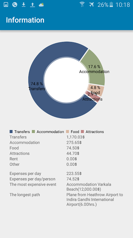 • Kira pelancongan bajet, perbelanjaan sebenar dan menunjukkan ramalan untuk sepanjang perjalanan.
