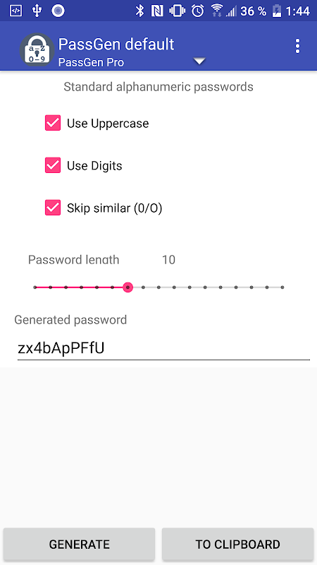 PassGen Pro adalah sebuah aplikasi untuk menjana kata laluan dengan native speakers, mudah, dan dioptimumkan untuk antara muka skrin sentuh mudah alih. Ia menyokong lima mod: