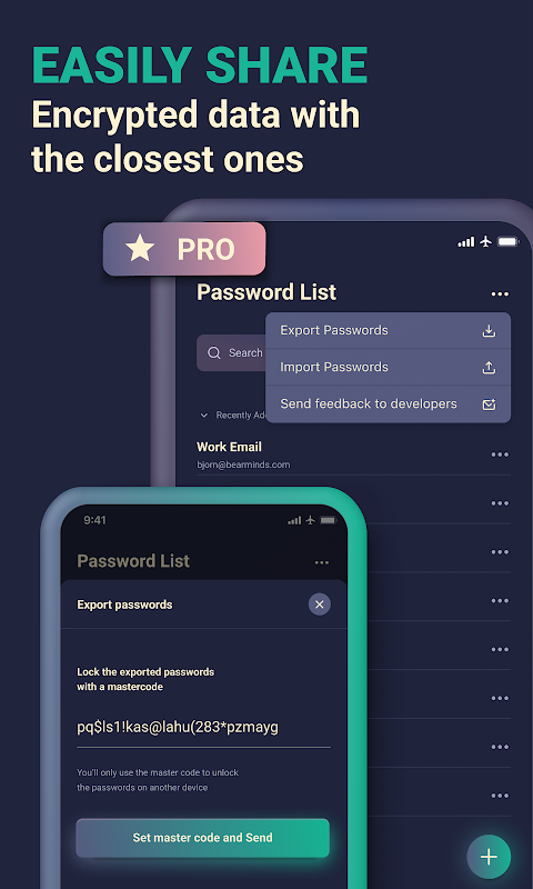 • Versi Pro: Storan tanpa had, penganalisis kata laluan, perkongsian selamat dengan pengguna Passkeep lain