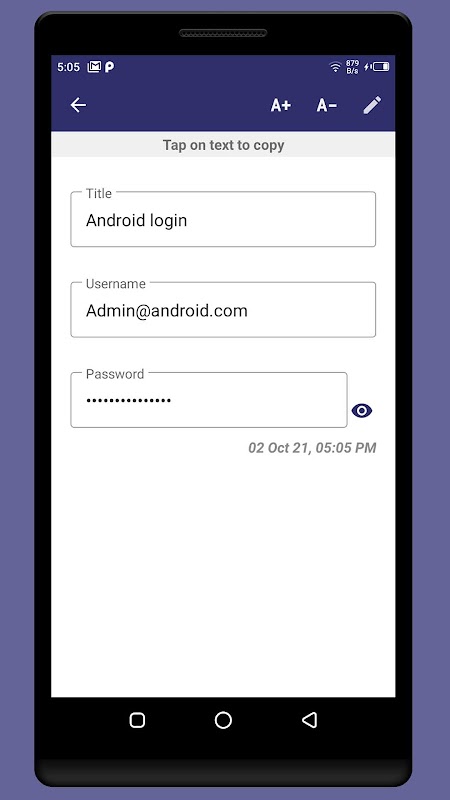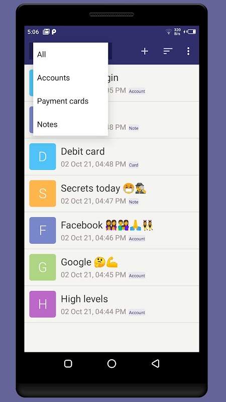 Sebagai pengurus kata laluan yang mudah, kami tidak mempunyai sebarang storan awan. Jadi semua kata laluan anda disimpan dalam peranti anda sahaja. Elakkan kehilangan data, sandarkan kata laluan anda secara manual dan simpan fail sandaran di tempat yang selamat.