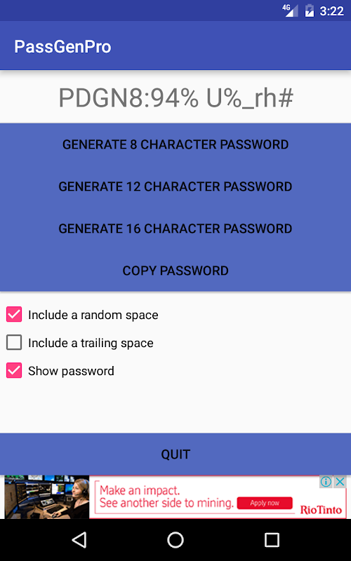 PasswordGenPro is a simple password generator that creates strong, web service friendly, 12 character passwords.