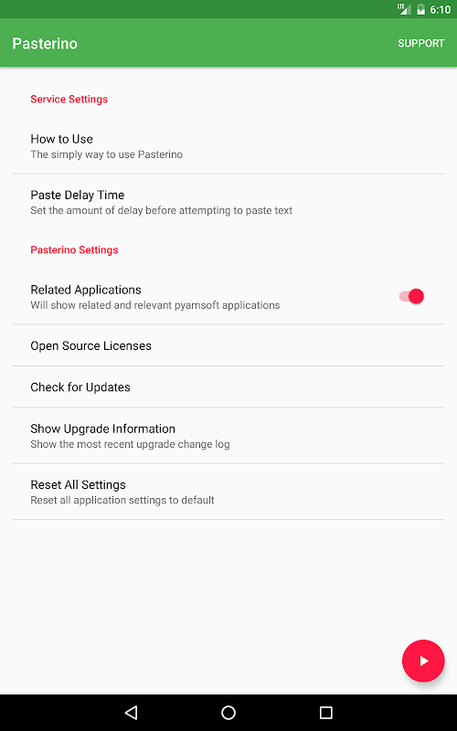 Pasterino requires an Accessibility service to assist users with disabilities by allowing them to easily paste content into input fields. Pasterino does this by searching through the current open screen and pasting clipboard content into the currently focused input field.
