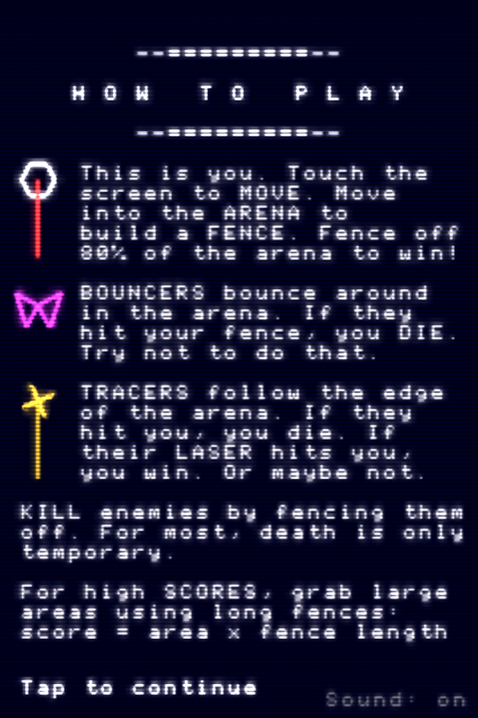 Permainan taktik gaya arked dan refleks cepat! Dapatkan tanah seberapa banyak yang anda boleh sambil mengelakkan Bouncers cuba memukul kerja pembinaan anda dan Tracers cuba memotong anda dengan sinar laser! Berani diberi ganjaran tinggi, tetapi berjudi dengan bijak!
