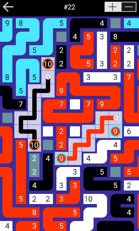 Lukis garis berwarna terang dan tebal untuk membuat laluan menghubungkan pasangan nombor berwarna. Panjang setiap laluan mesti sama dengan nombor yang anda sambungkan.