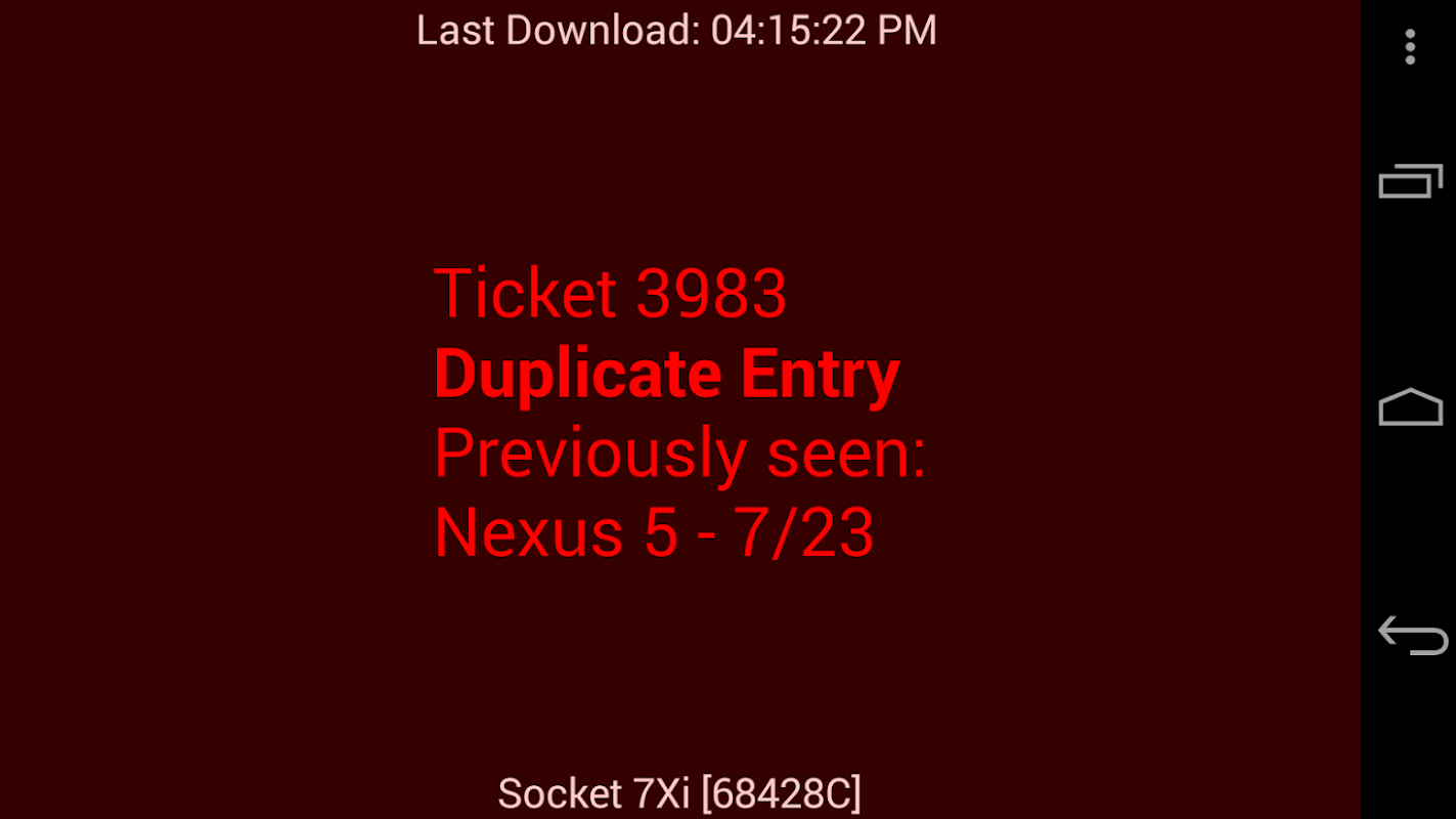 Dengan aplikasi Pengimbas Kod Bar PatronManager, anda boleh mengimbas tiket dengan cepat sebagai pelanggan memasukkan acara anda menggunakan mana-mana peranti Android. Cepat mengesahkan tiket yang baik untuk prestasi; skrin akan menyala hijau jika tiket itu bagus, dan merah jika ia buruk. Untuk produktiviti dan ketepatan yang lebih baik, pasang telefon ke pengimbas Socket Mobile CHS 8Qi Bluetooth®.