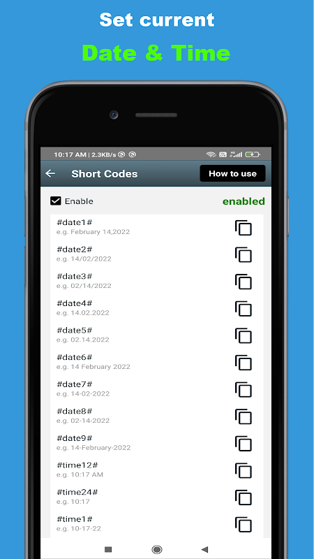 • Masukkan kod pendek untuk tarikh, masa & nilai dinamik