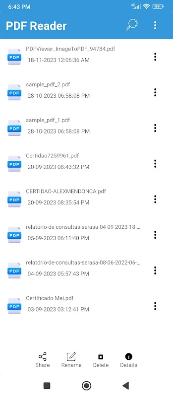 Pembaca PDF secara automatik mengekstrak semua fail PDF daripada storan dan menyusunnya ke dalam senarai.
