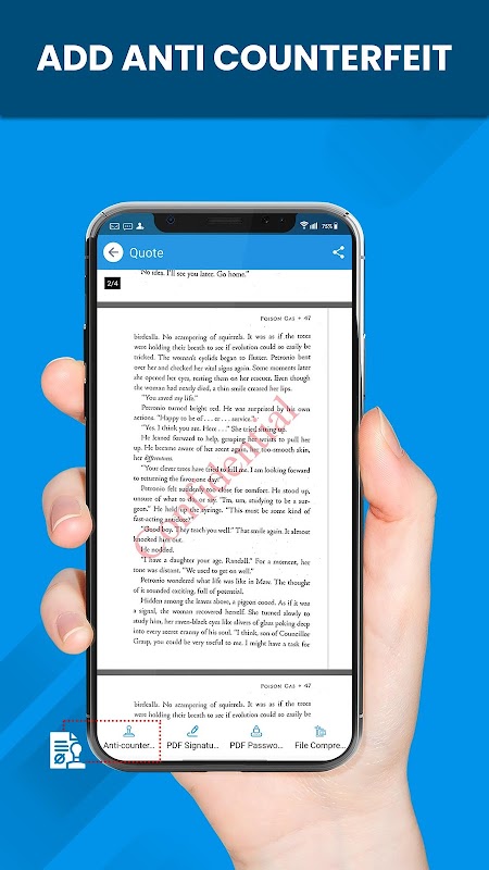 🛡️Anti-Pemalsuan - Dengan pengimbas PDF 2022 ini, anda boleh meletakkan tera air tersuai pada PDF untuk keselamatan imej dengan mudah.