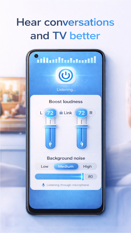 Alat Bantu Dengar di HP mengubah ponsel Anda menjadi alat bantu dengar sederhana untuk membantu Anda mendengar lebih jelas dalam aktivitas sehari-hari. Dengarkan percakapan dengan lebih baik dan memahami ucapan dengan lebih jelas, hanya dengan menggunakan HP Anda, tanpa perangkat mahal atau pengaturan rumit.