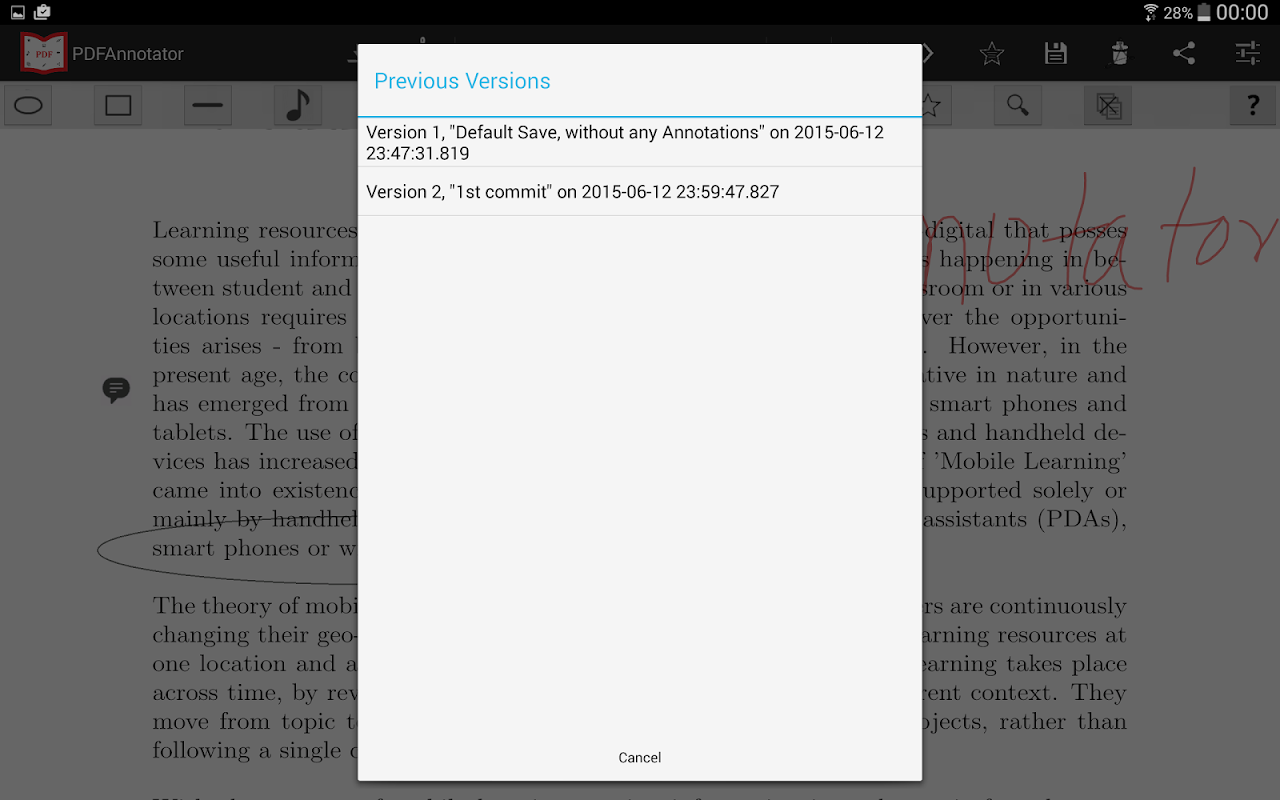 PDFAnnotator adalah bebas daripada kos, tiada pendaftaran diperlukan dan benar-benar bebas daripada sebarang iklan pihak ketiga. Ia diuji pada kebanyakan Android 4.4.2 (KitKat) peranti berasaskan dan yang terbaik apabila digunakan dengan 10 tablet inci.