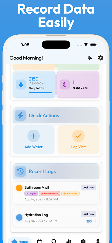 Ambil langkah pertama ke arah kesihatan pundi kencing yang lebih baik. Mulakan log, dapatkan cerapan dan kongsi data yang bermakna dengan doktor anda. Semua dalam satu aplikasi mudah.