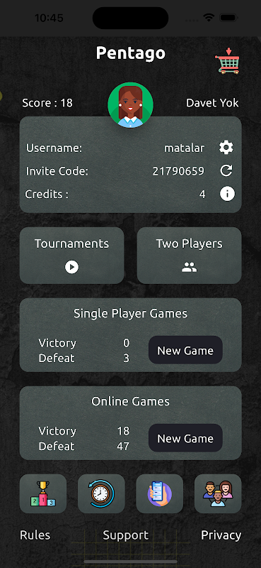 Bersaing Dalam Talian dengan Pemain dari Seluruh Dunia: Cabar pemain Pentago terbaik di dunia dalam perlawanan dalam talian yang menarik.