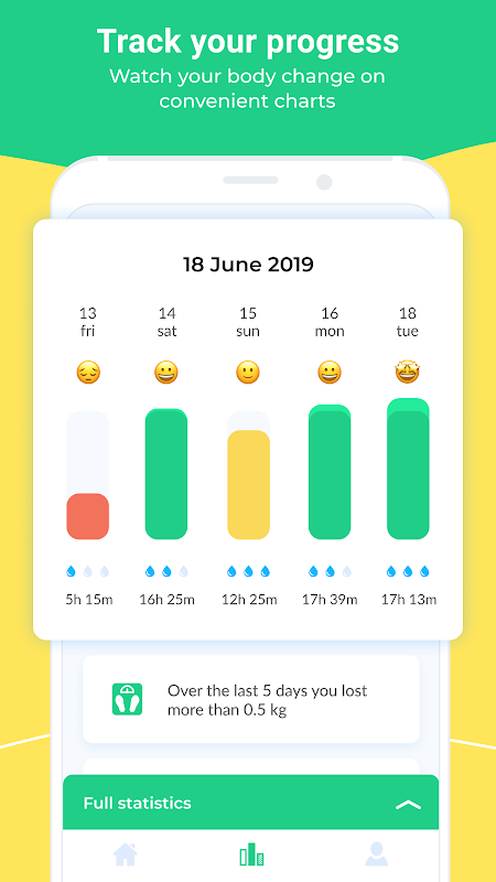 Ini membolehkan anda mengembangkan program puasa dan pemulihan yang berselang, yang akan membantu anda menurunkan berat badan dengan cepat tanpa membahayakan kesihatan anda. Tanpa makanan atau kaunter kalori. Aplikasi ini juga memungkinkan untuk menjadi lebih atletik dan meningkatkan kesejahteraan anda. Hasilnya dapat dilihat selepas seminggu.