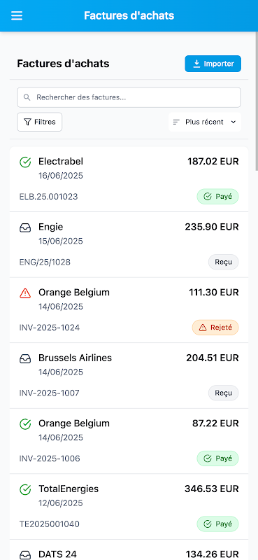 Peppol Box ialah aplikasi yang direka untuk membantu peniaga, individu yang bekerja sendiri dan perniagaan kecil dengan mudah mematuhi kewajipan undang-undang yang berkaitan dengan invois elektronik melalui rangkaian Peppol. Mudah, cepat dan selamat, penyelesaian kami membolehkan anda menerima dan menghantar invois elektronik berstruktur, selaras dengan perundangan Belgium mulai 2026.
