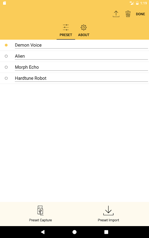 - Import dan eksport pratetap menggunakan awan pihak ke-3 seperti Google Drive, Dropbox, atau menghantar melalui e-mel, bluetooth, atau kepada apl lain.