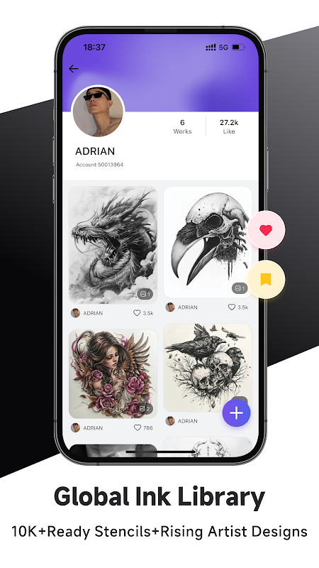 Anda boleh memuat naik draf reka bentuk tatu anda untuk diedit dan dicetak.