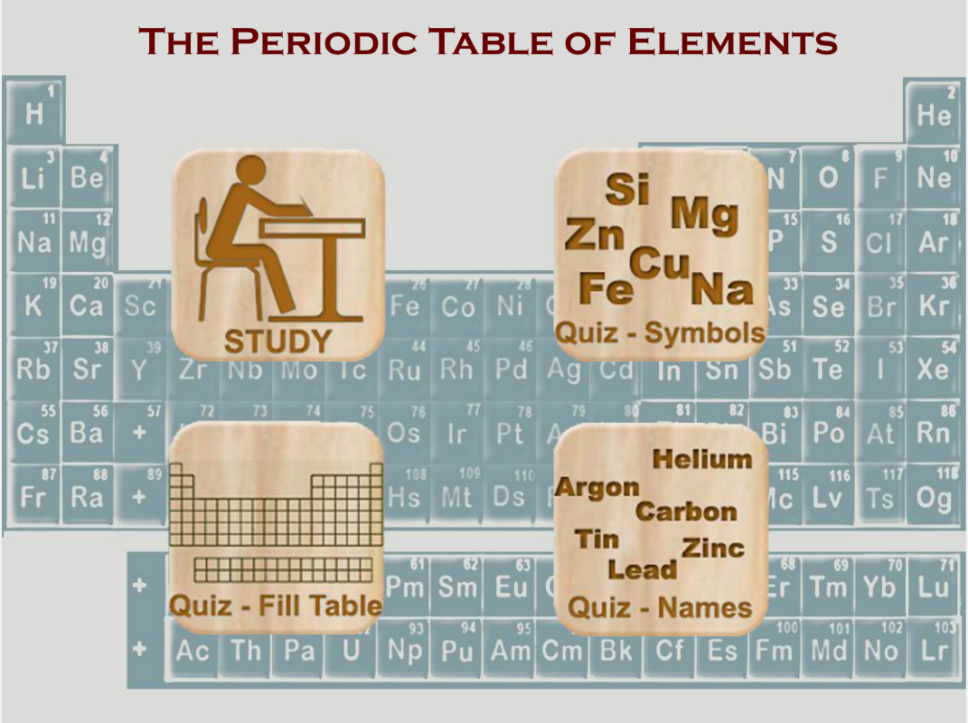 • Mod Amalan dan Mod Kuiz untuk belajar Elemen Jadual Berkala.
