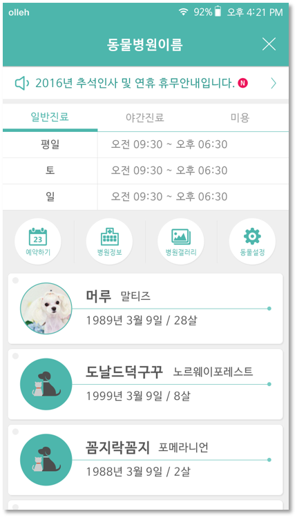Anda boleh menerima maklumat haiwan dan maklumat perubatan, bahan pendidikan, pengurusan vaksinasi, kupon, dan lain-lain yang dimasukkan ke dalam hospital haiwan.