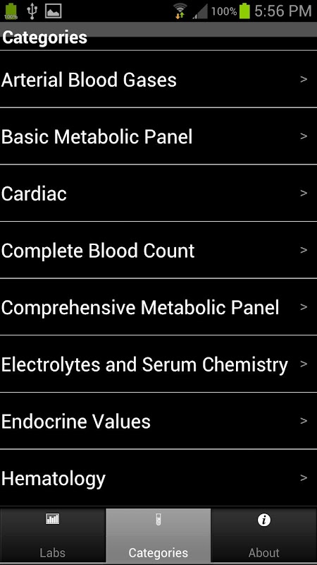 The Pharmacy Lab Values app is a completely free application providing over a 150 lab values that are frequently used by medical professionals. It is developed by a pharmacy student with pharmacists, teachers, and students in mind. The app focuses on providing relevant information for the field of pharmacy. The information is meant as quick reference, so descriptions of the values and critical values are something that is not included at this time.